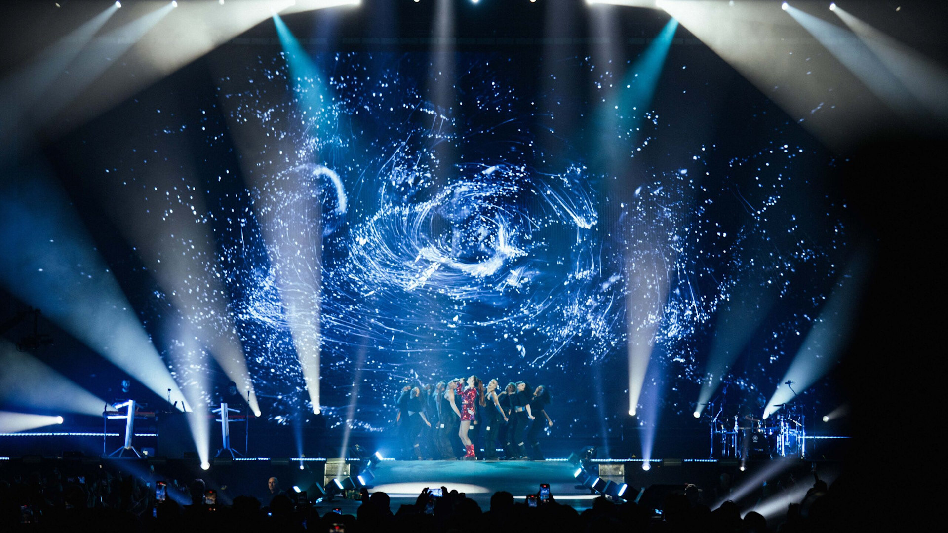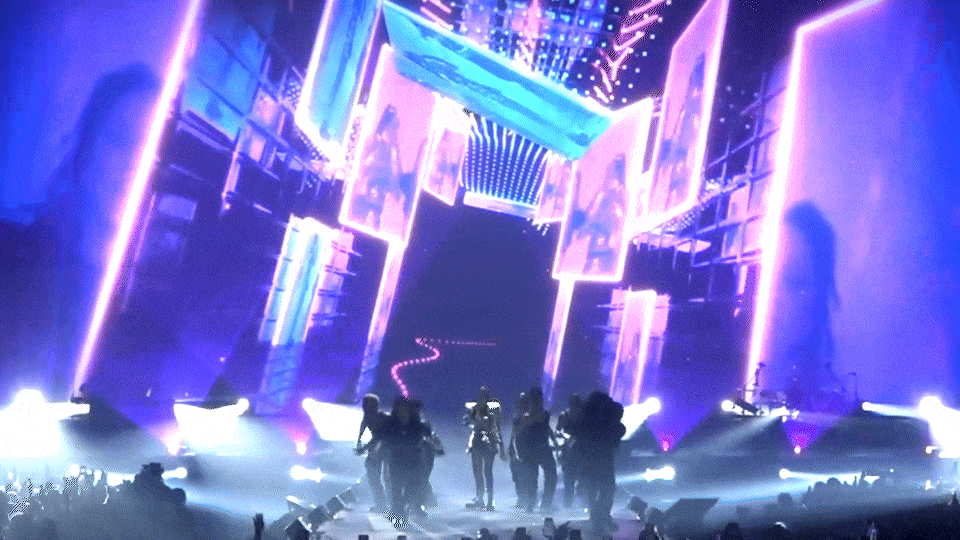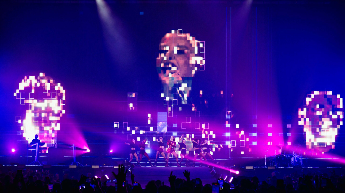 We created video effects that blended seamlessly from song to song. We used Notch's Virtual Background feature to keep the focus on Annalisa and add precision to the visual mix. The team then prepared a Notch Block with visible parameters controllable via MIDI.