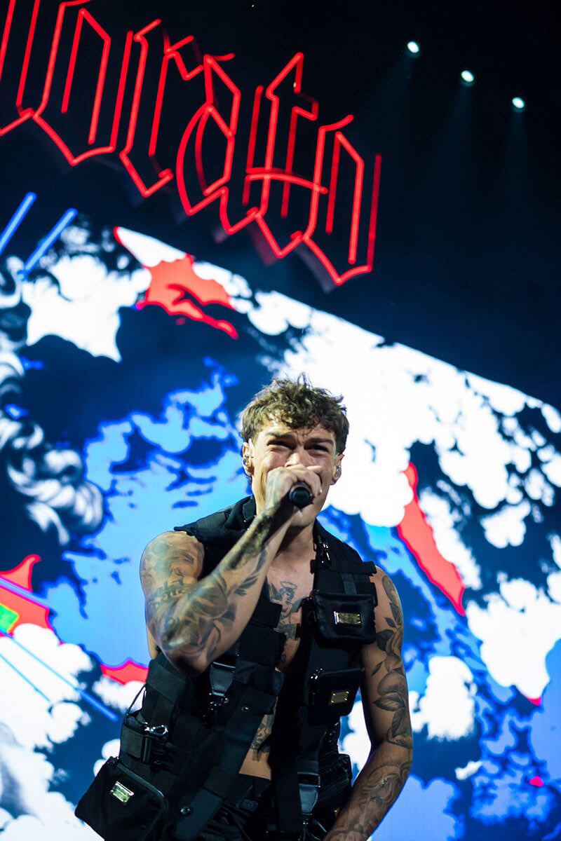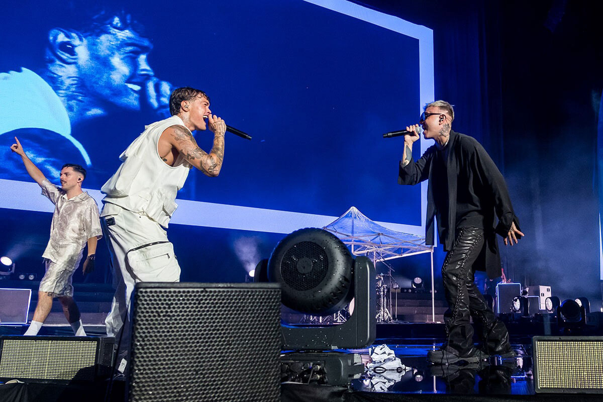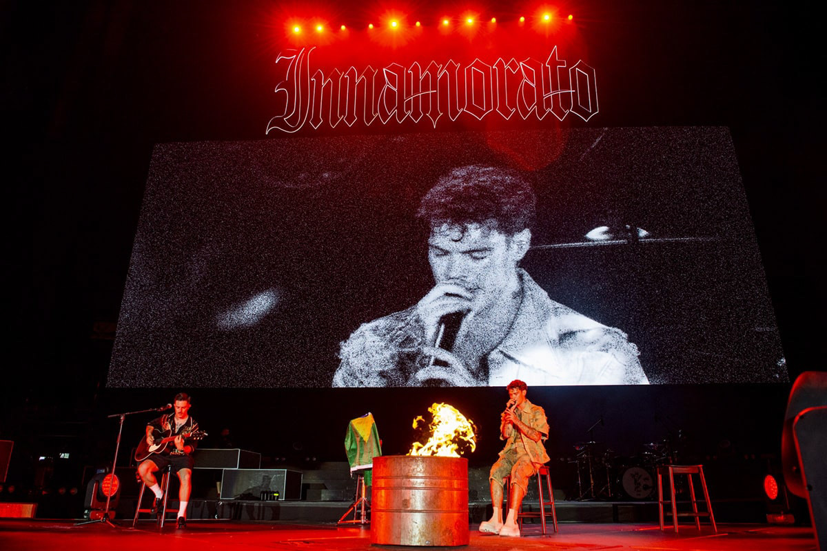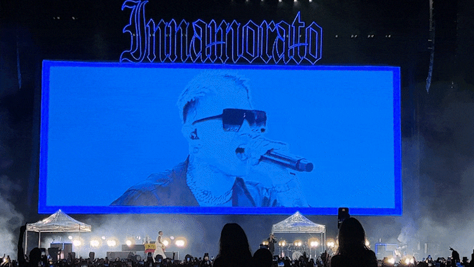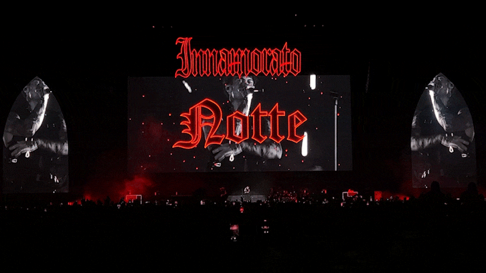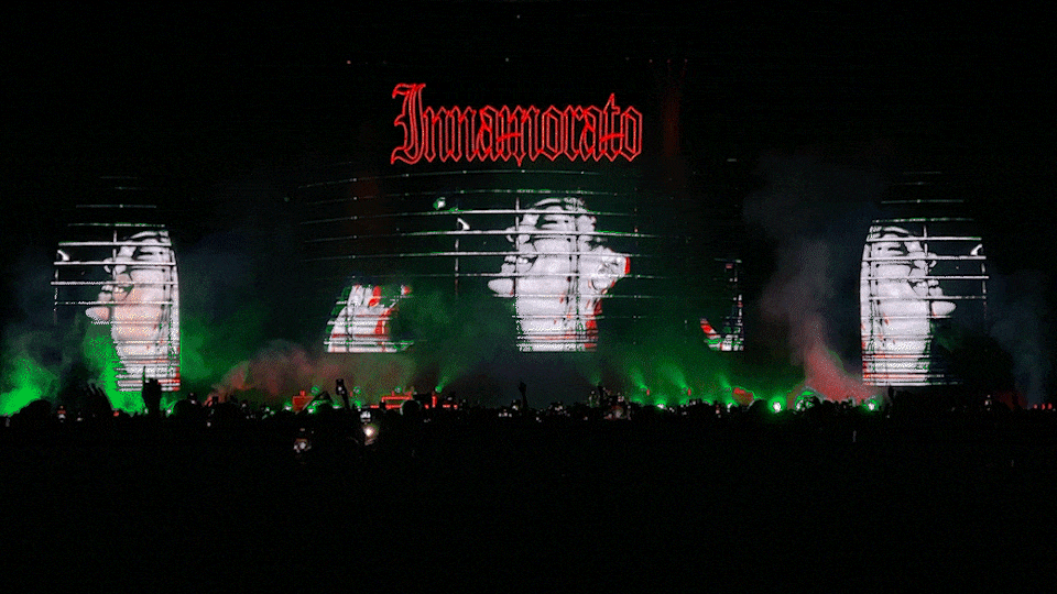 In 2023, Blanco embarked on a stadium tour with performances at Rome's Stadio Olimpico on July 4 and Milan's San Siro Stadium on July 20. For these monumental concerts, real-time IMAG (Image Magnification) effects were developed to enhance live camera feeds, aligning seamlessly with the show's visual aesthetics.