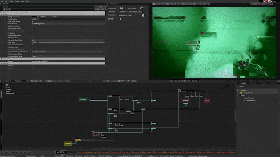 The visual effects were crafted using Notch and operated through a custom notch block integrated with a Disguise media server. This setup ensured synchronized, real-time graphics that complemented the dynamic performances on stage.