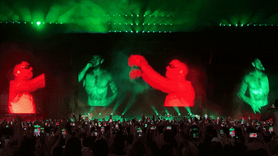 A key aspect of the project was the seamless integration of multiple live camera feeds, treated with customized RGB effects inspired by the show’s moodboard. These treatments created a cohesive visual language that tied together the vibrant energy of the performances with the artistic direction of the stage design. Each camera feed was individually styled to align with the overall theme, adding depth and dynamism to the live visuals, while maintaining a consistent aesthetic throughout the tour.