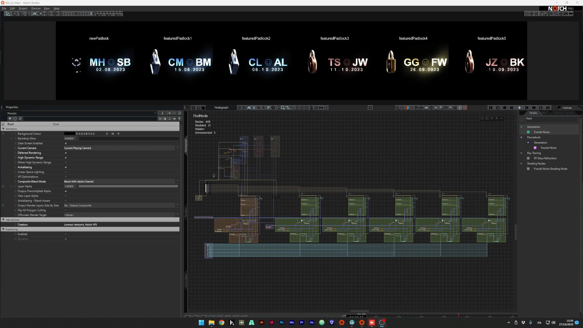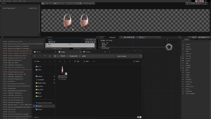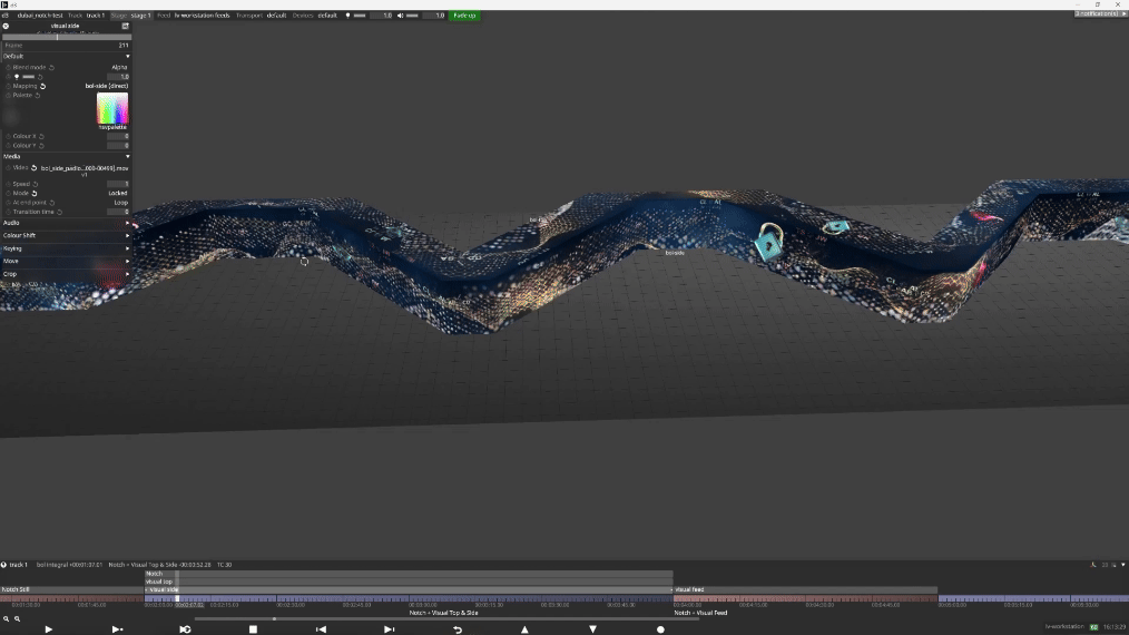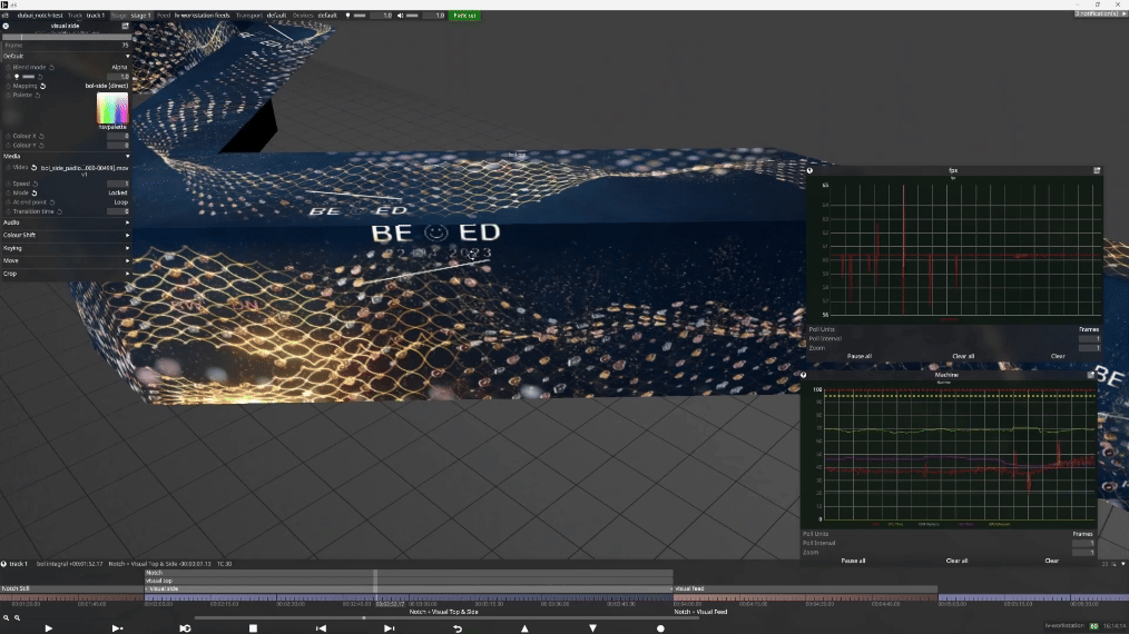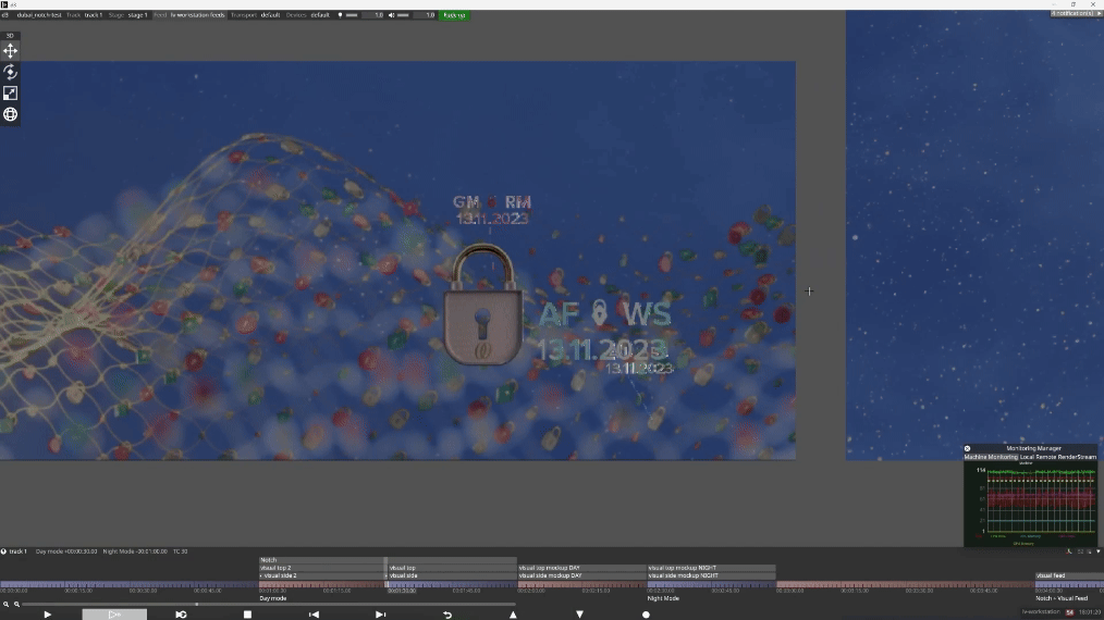 The visual infrastructure of the project is powered by Notch, ensuring a seamless interactive flow between the web app and the physical installation. The LED wall, which wraps around the bridge with ever-evolving visual content, combines pre-rendered and real-time generated elements. The connection between the web app and the LED wall is made possible through a JavaScript script integrated into Notch, which receives purchase data and dynamically updates the displayed content. The entire system is orchestrated by the disguise (d3) media server, responsible for handling real-time playback in Notch, content mapping, and animation synchronization with the bridge structure.