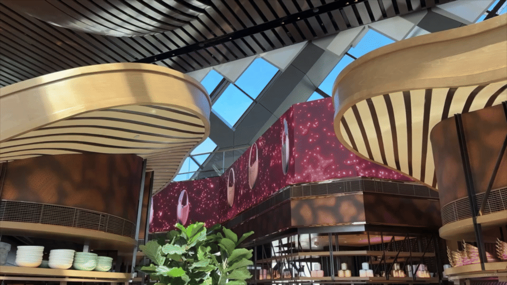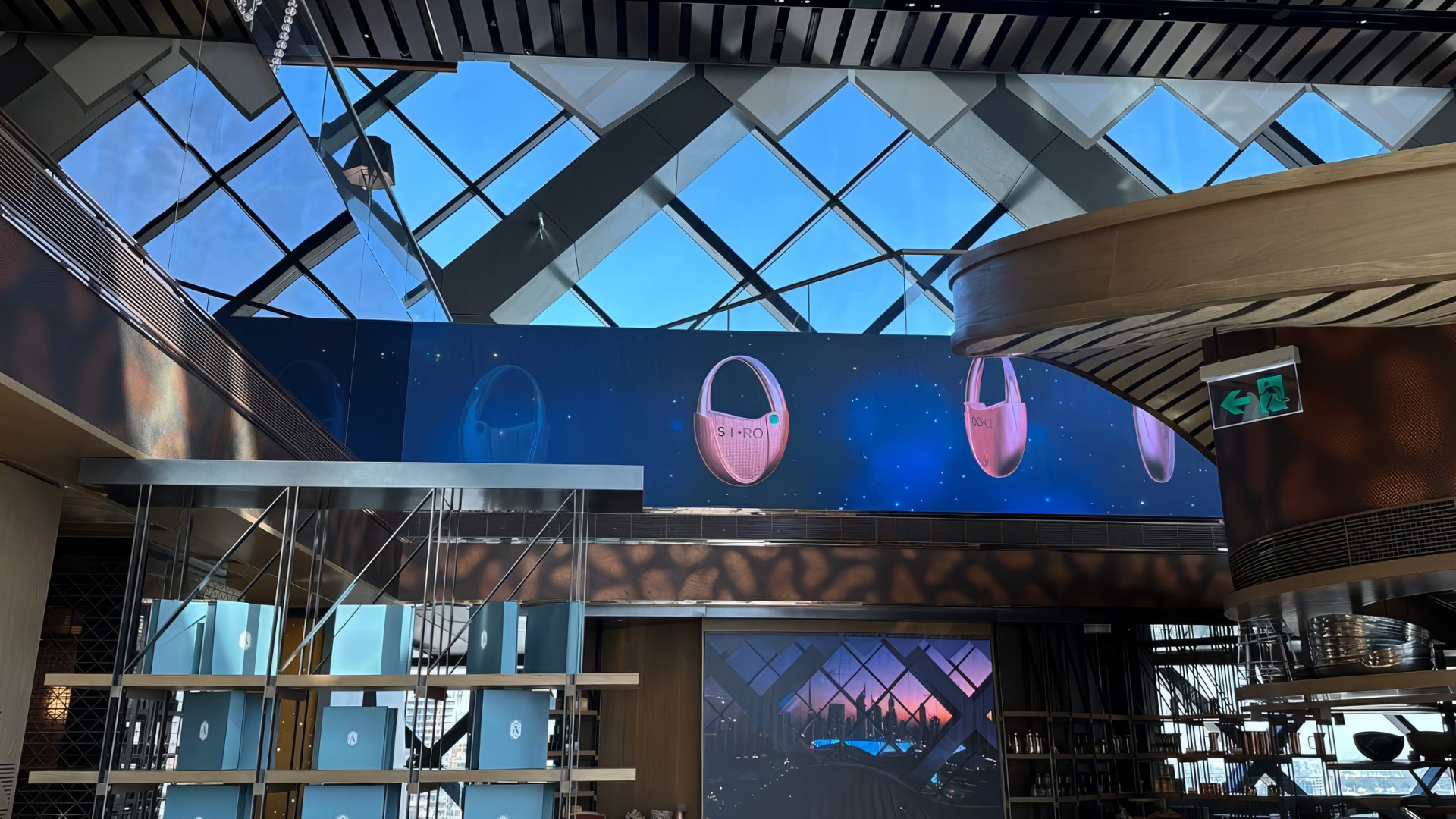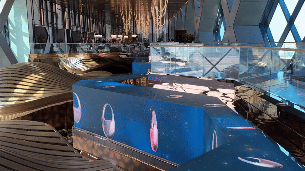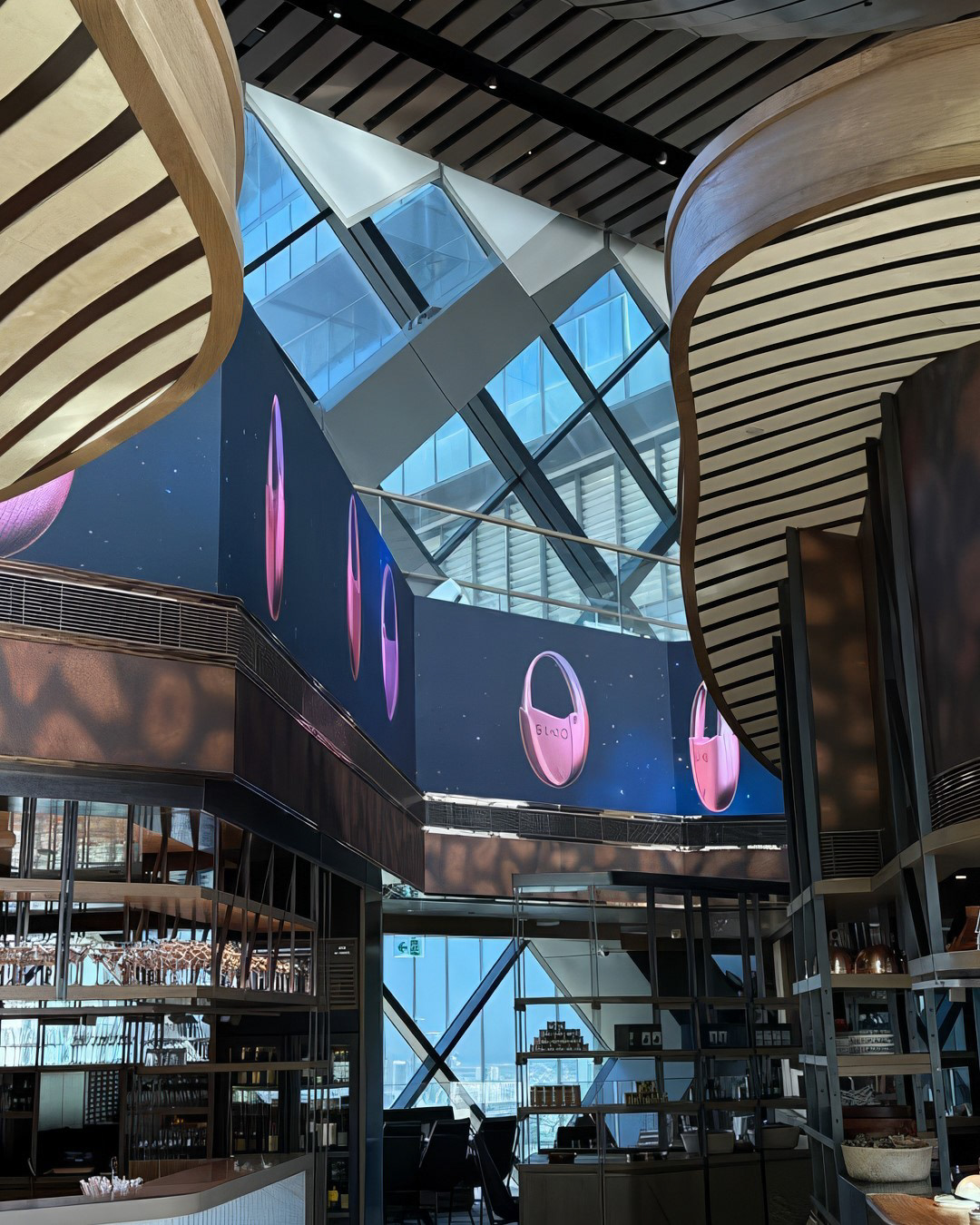 Located in the heart of Dubai, the Bridge of Love is a permanent interactive installation inside the One Za’abeel tower, designed to create a unique emotional experience for visitors. Guests dining at the restaurants can purchase a digital padlock, customize it, and see it appear in real time on the LED wall spanning the bridge between the two dining areas. By scanning a QR code on their table, users access the dedicated web app, where they can choose the color, decorative gems, and engrave their initials.