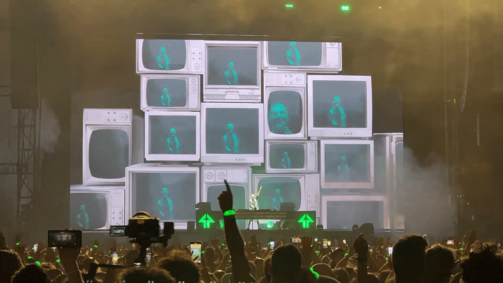 The work began with an in-depth analysis of the setlist, identifying key moments and defining, for each track, the color palettes, animation styles, and transition types best suited to create a consistent visual language for the entire show.