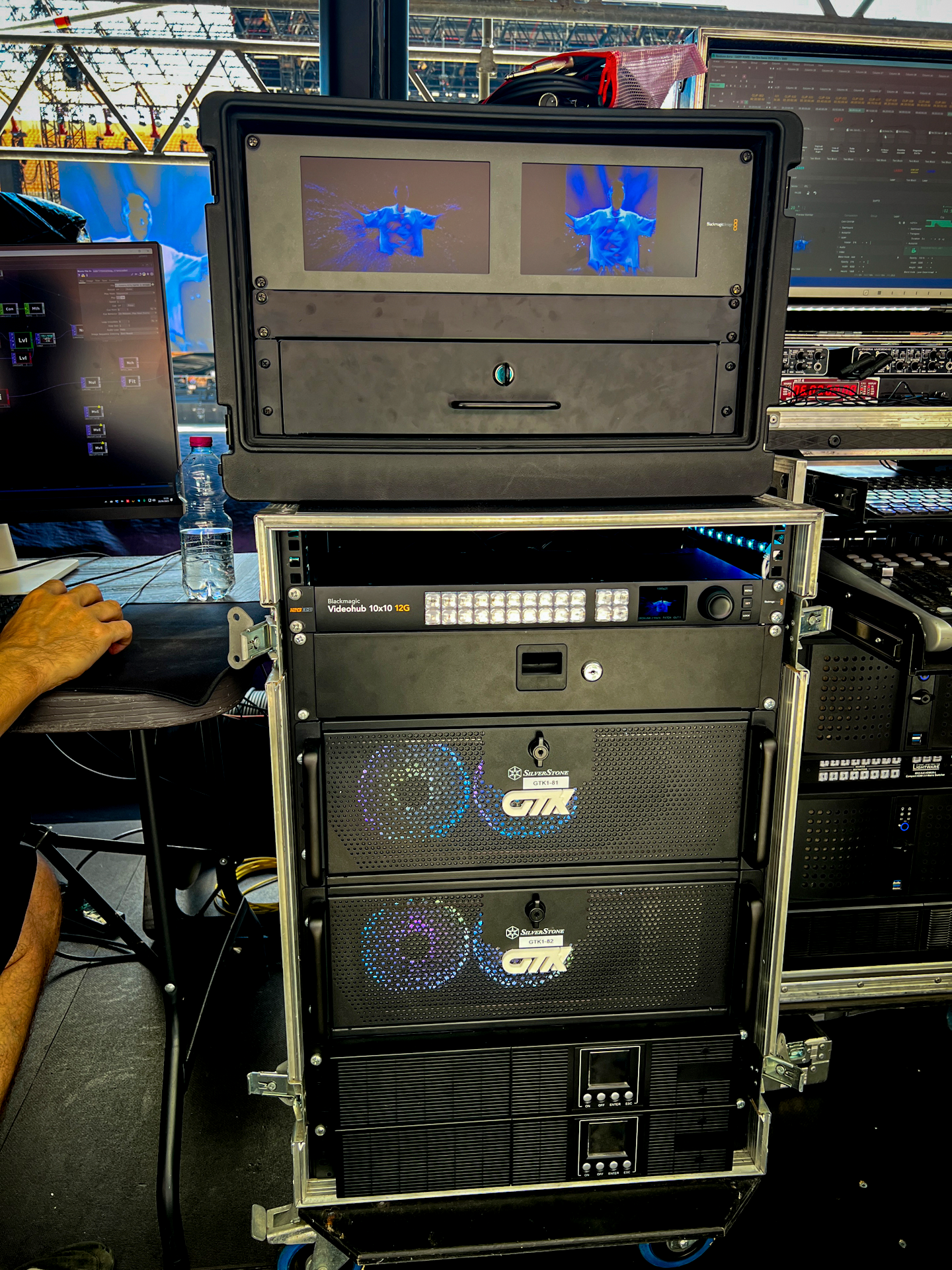 This allowed particle systems, distortions, morphing, and other generative effects to be directly integrated with the 3D content, maintaining creative flexibility right up to the final rehearsals.