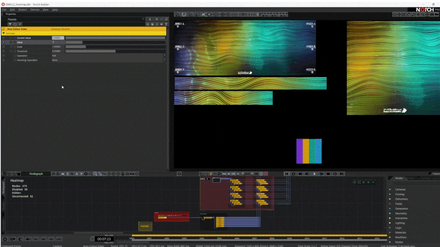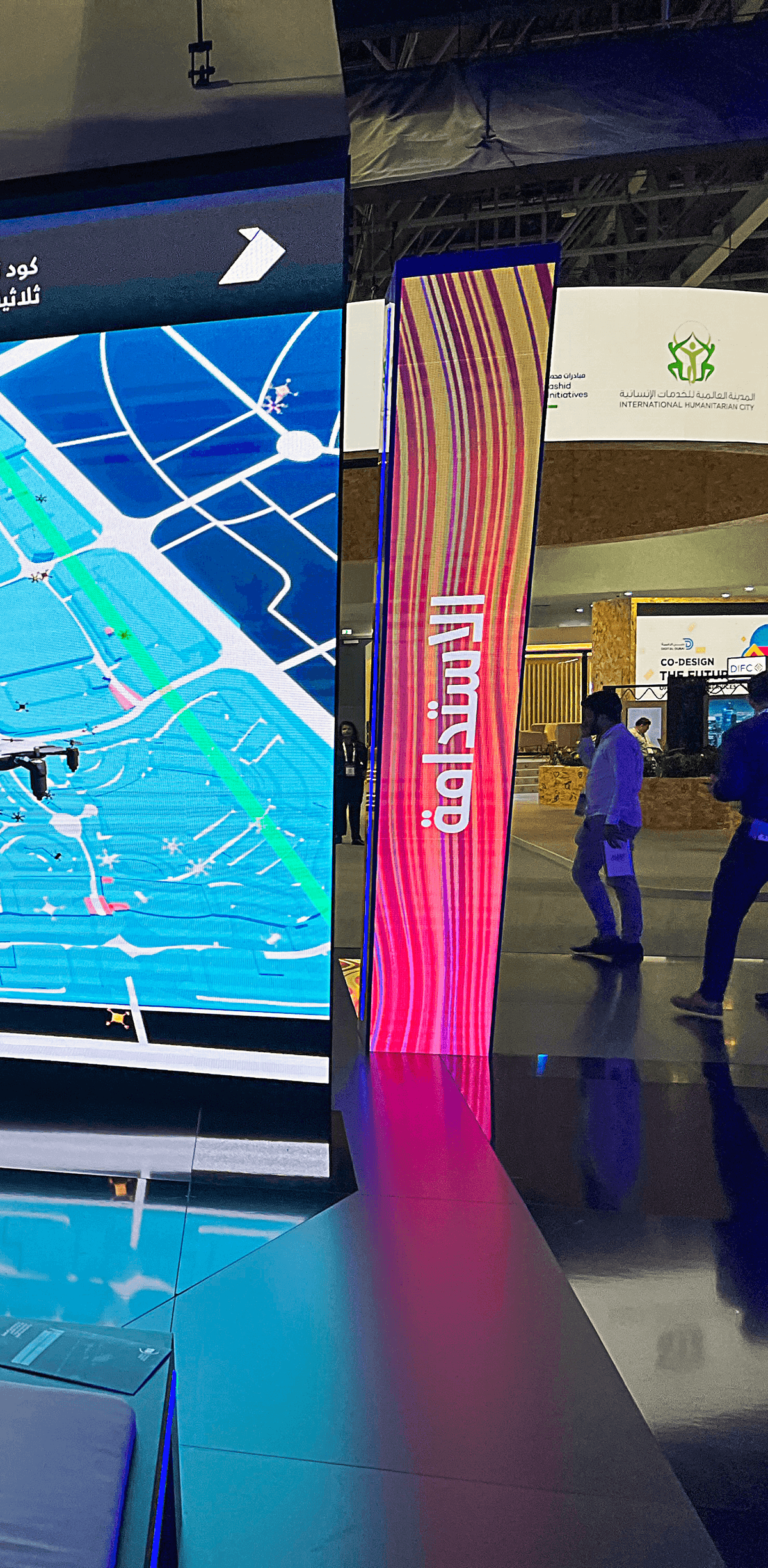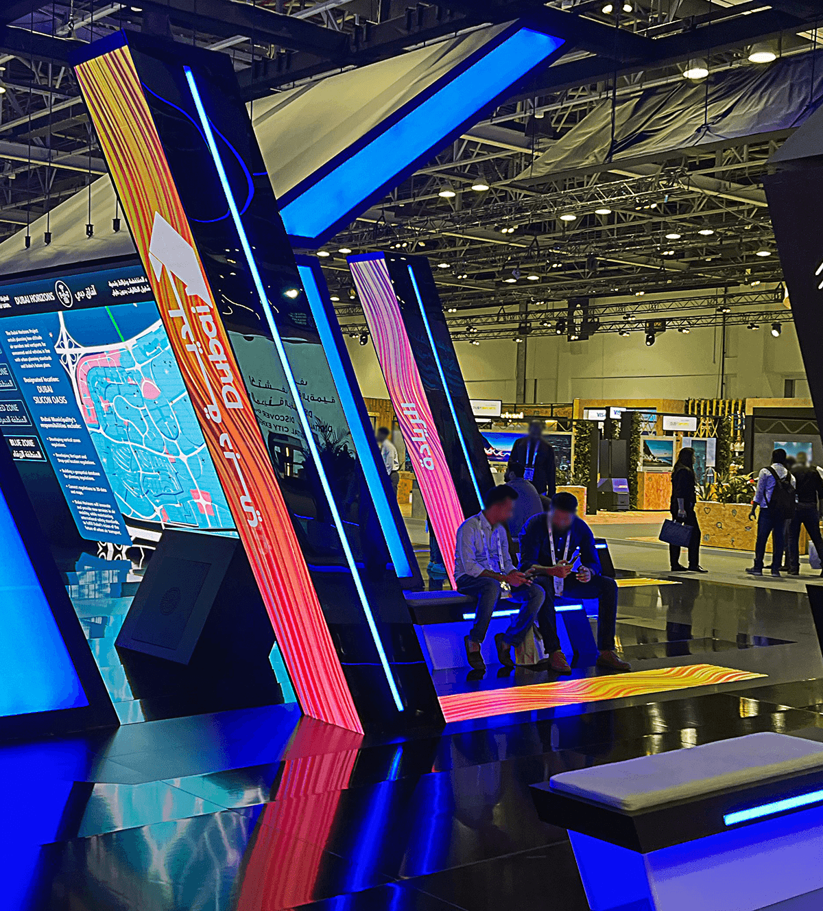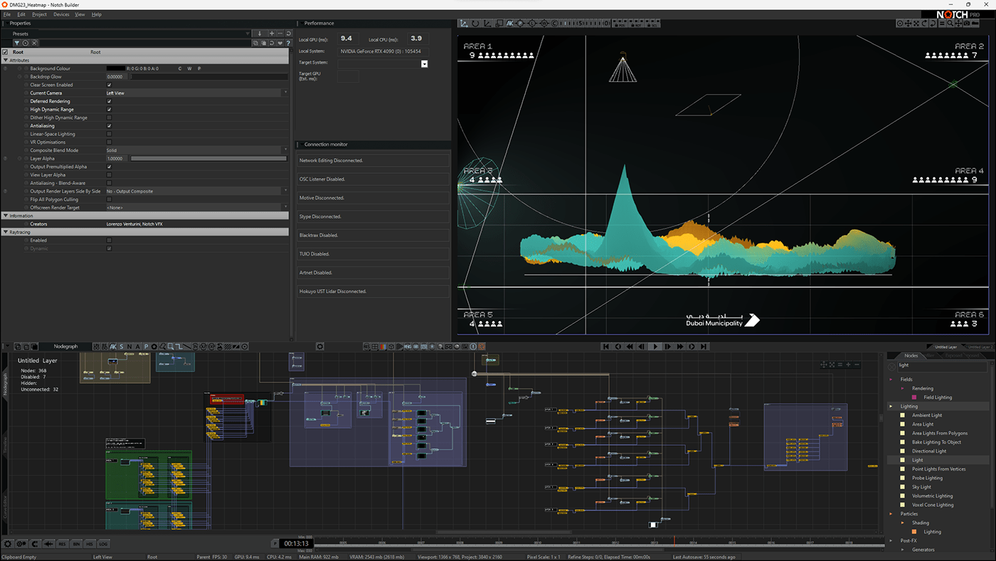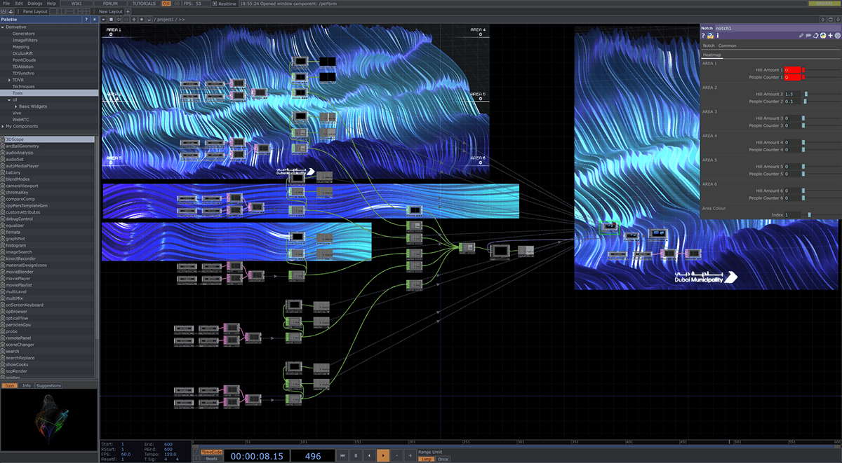 The project developed for Gitex 2023 in Dubai is a sophisticated interactive installation created using Notch, designed to monitor real-time crowd density of people within a specific area.