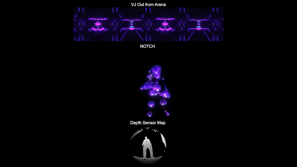 A cutting-edge motion sensor system was implemented to track the movements of Pacha’s iconic dancers in real time. Using Notch, these inputs generated responsive avatars that mirrored the dancers' motions, creating an immersive layer of interaction between the performers and the digital visuals.
