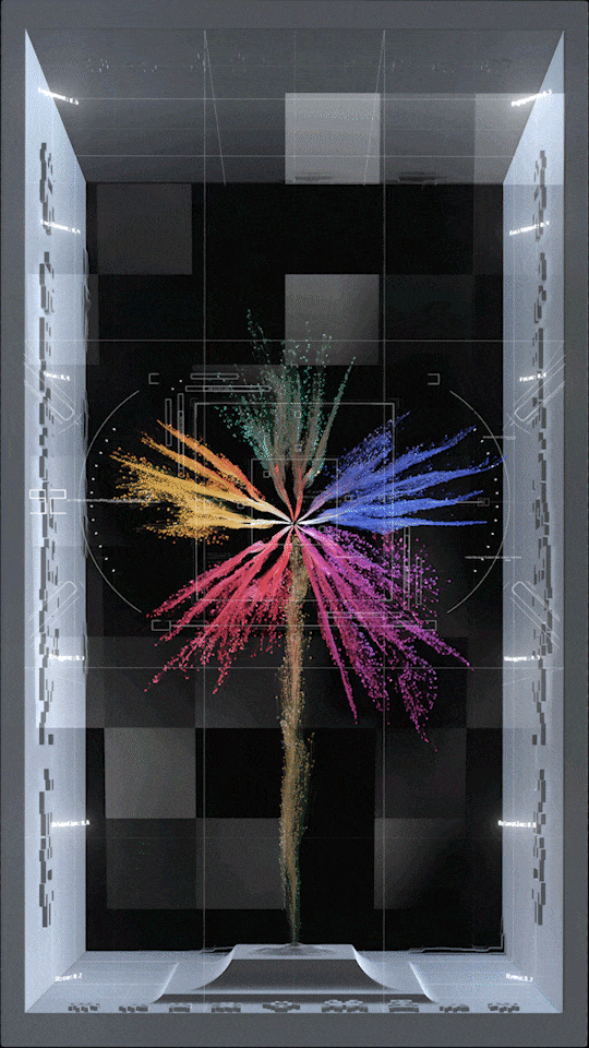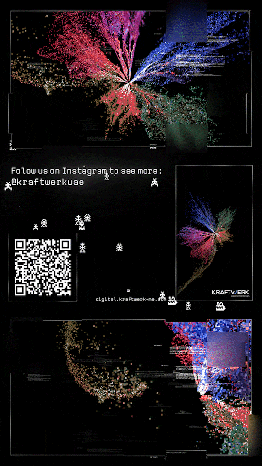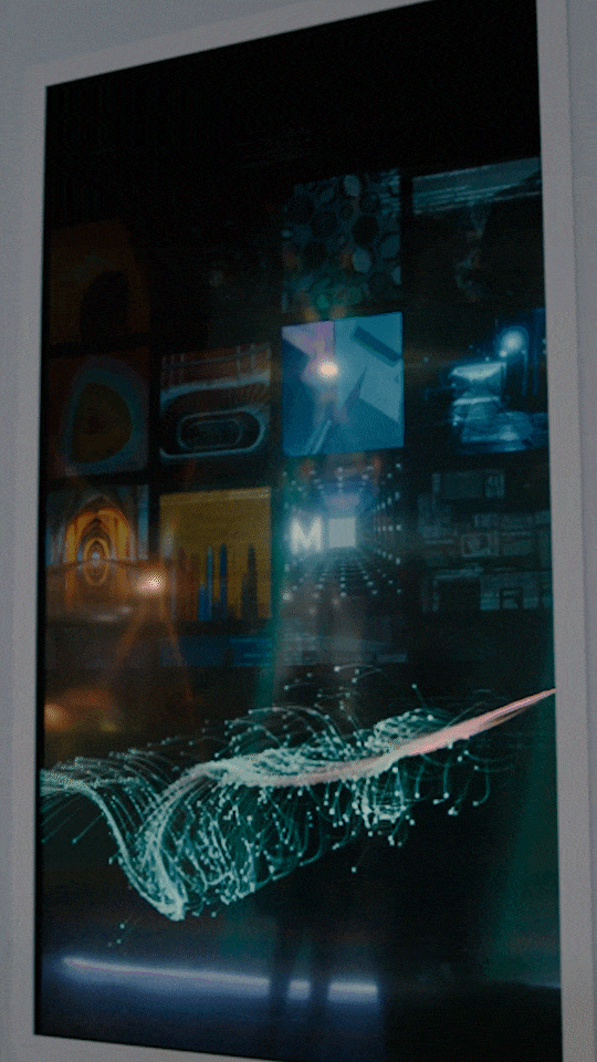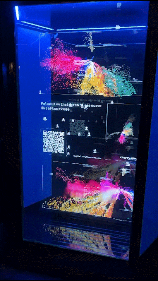 For KRAFTWERK and their KANVAS trade show stand, I designed a multisensory installation that blends storytelling, advanced technology, and generative art. The experience was divided into chapters, each crafted to engage the user in a unique and personal way. The journey began with a narrator’s voice, guiding the visitor and immersing them in a moment of emotional and mental introspection. This set the stage for what followed: a visually and sensorially rich exploration like no other.