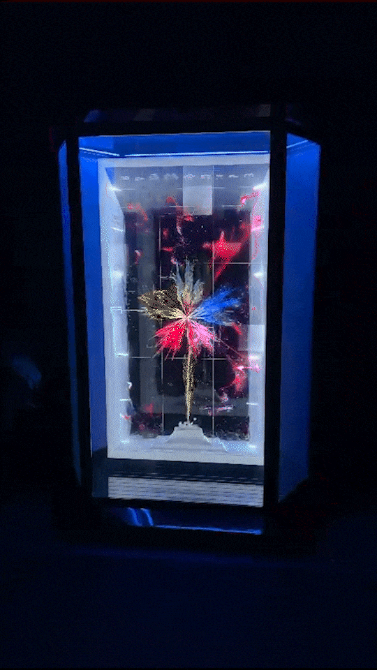 The final result was the generation of an abstract flower, where each petal represented a different emotional spectrum. Shapes, colors, and textures merged to create a unique visual representation, a mirror of the emotions captured during the experience. Each flower—an intersection of technology and creativity—was screenshotted and saved in a dedicated database, forming a digital archive of human emotions translated into generative art. The installation concluded by leaving the user with a symbolic image of their emotional journey.