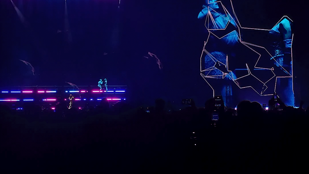 Using Notch and TouchDesigner, we animated visuals in real time, allowing images to move, transform, and interact seamlessly with lights and sound, perfectly complementing Liberato’s enigmatic and poetic style.