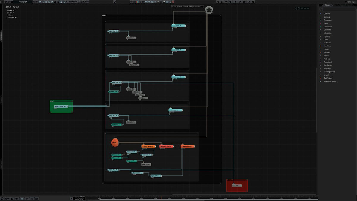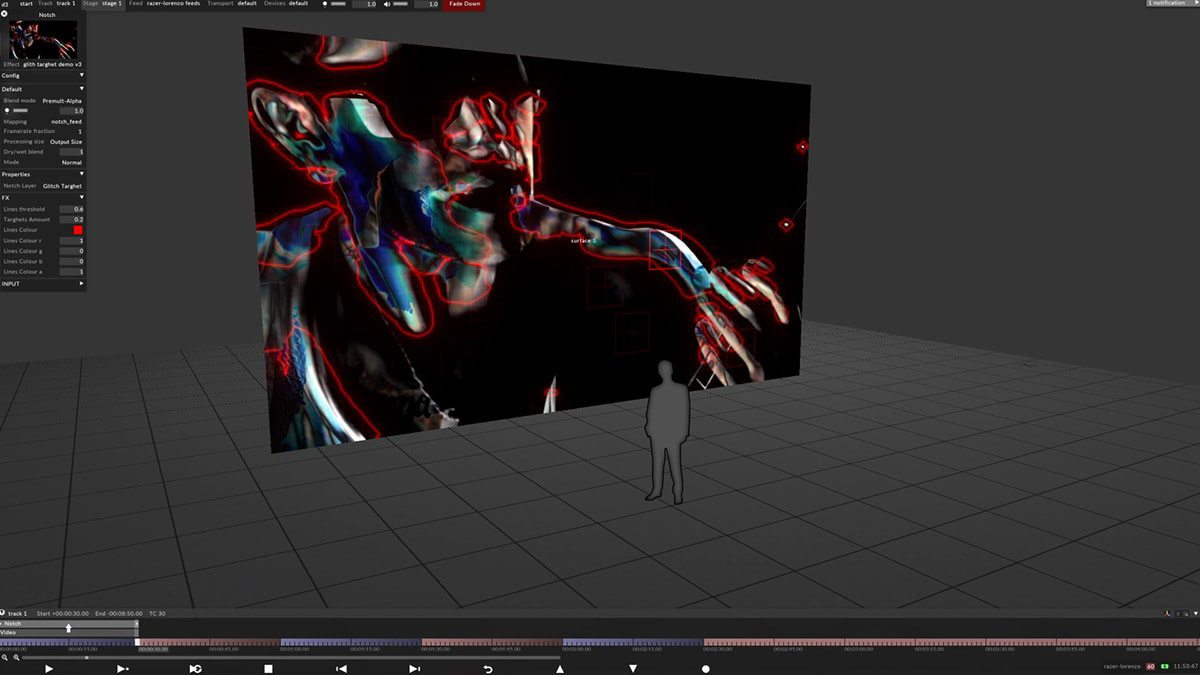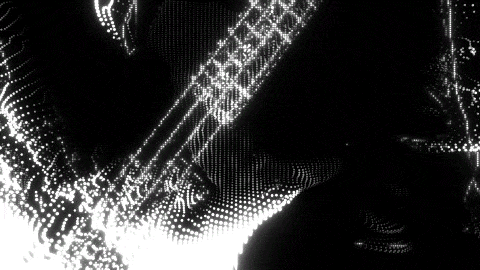 Like Terminator, this IMAG traces the contours and movements of the incoming videos, thanks to the “Particles System” and the various overlapping effects that highlight the edges of the framed subject.