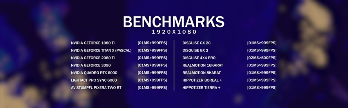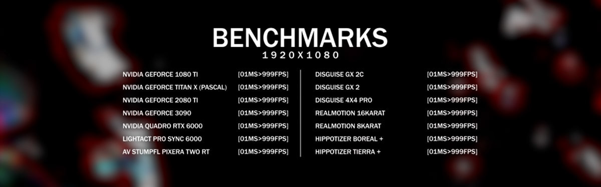 Disguise, Green Hippo, Touchdesigner, Smode, Avolites, Screenberry, 7th Sense, Pixera, Pandoras Box, Light Act, VYV – Photon, RealMotion, Vertex, Live FX.