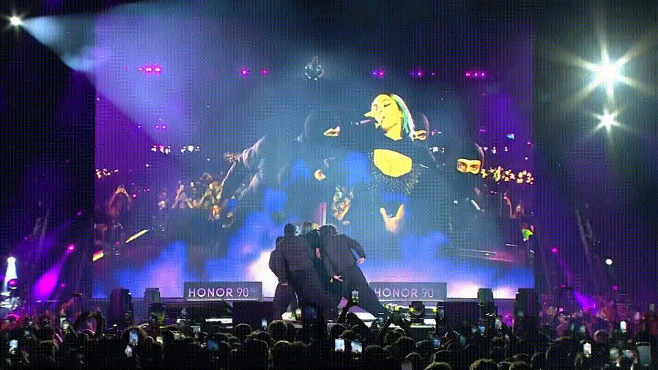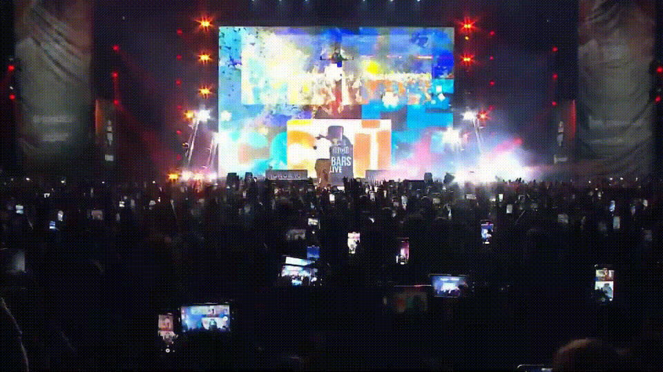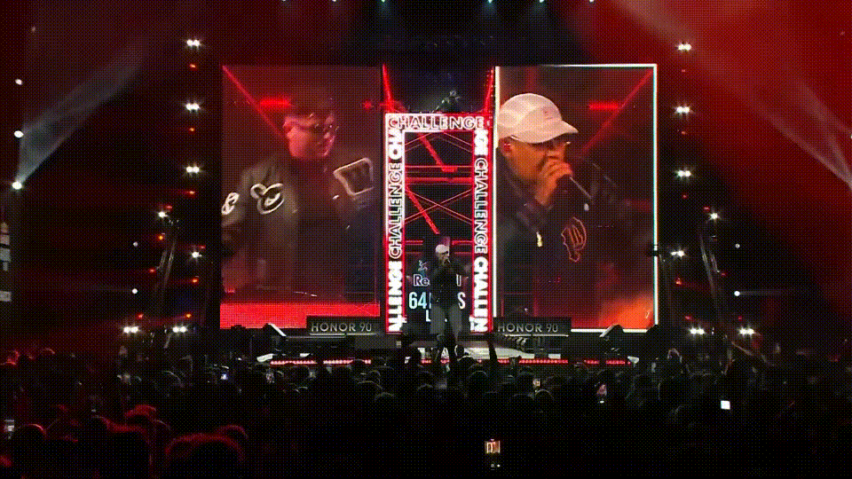 a modern example of audiovisual performance. Real-time graphics added depth and movement to the stage without distracting from the live rap performances. As a result, the audience experienced a powerful fusion