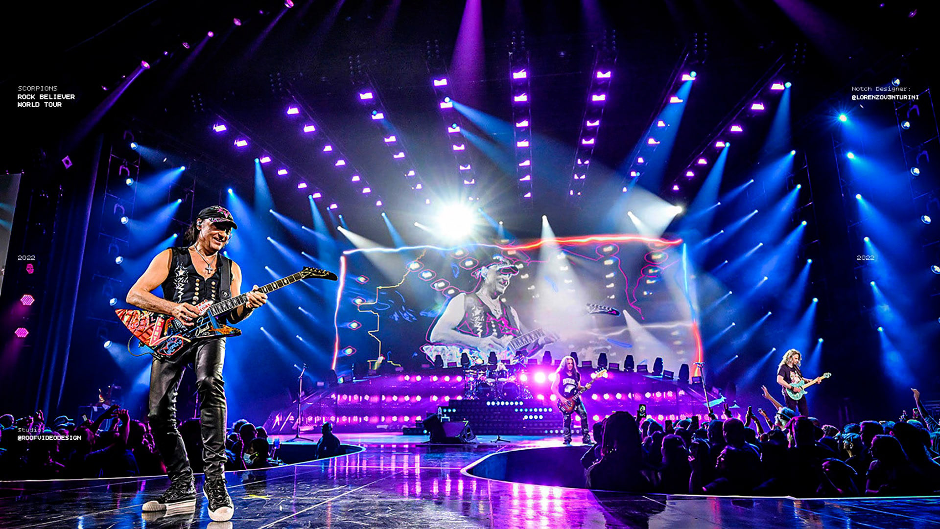 Manfred Nikitser, the Scorpions' light designer, contacted us to design different Notch effects to be used during the band's world tour. We immediately accepted the challenge and got to work.