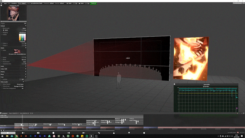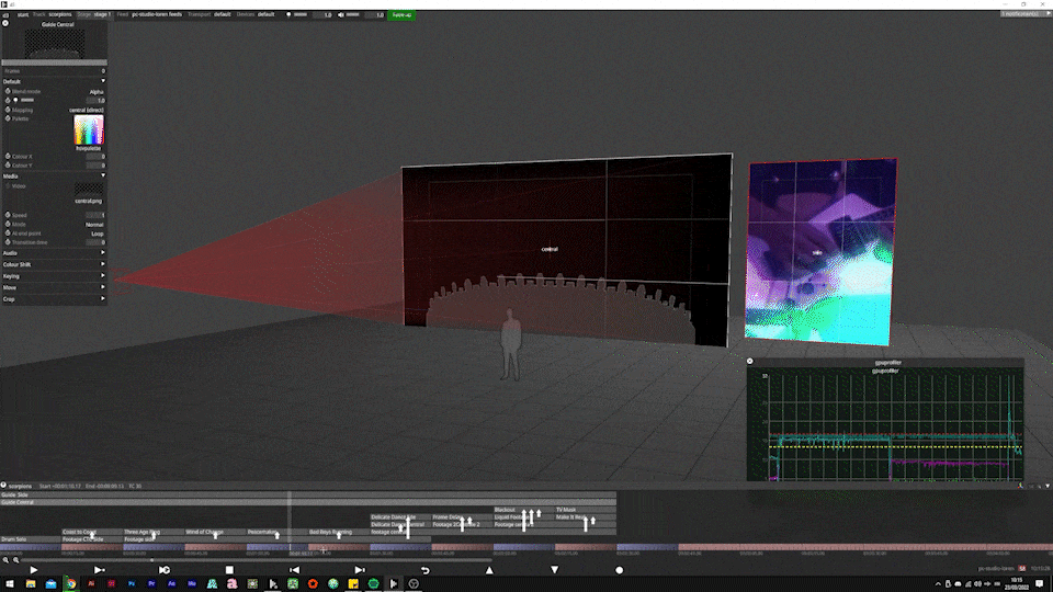 We then took care of installing our effects on the media server, working alongside the other members of the technical team.