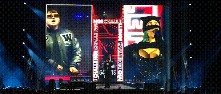 Through it, we were able to design and deliver complex stage effects: glitchy animations inspired by coding aesthetics, three-dimensional flames synchronized with sound and lighting cues, and fluid graphic layering that reacted to movements on stage.