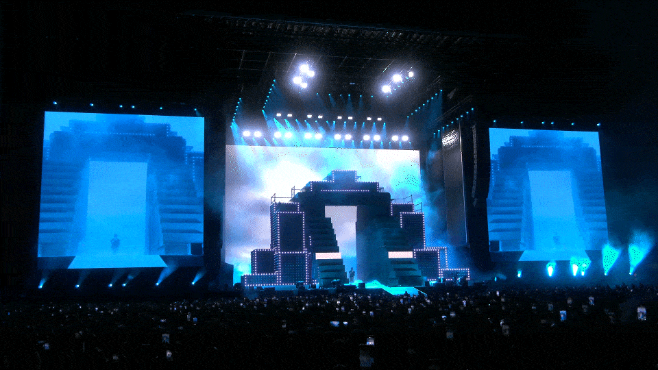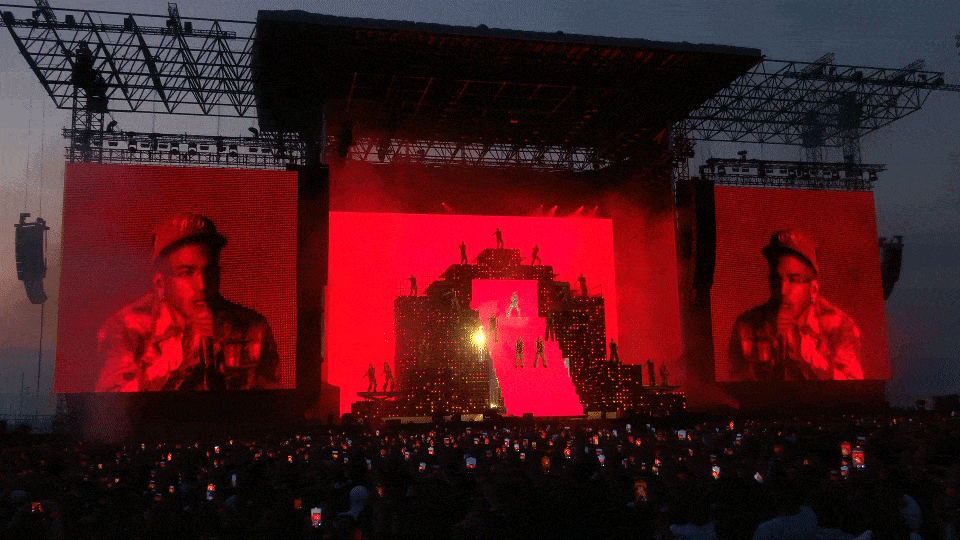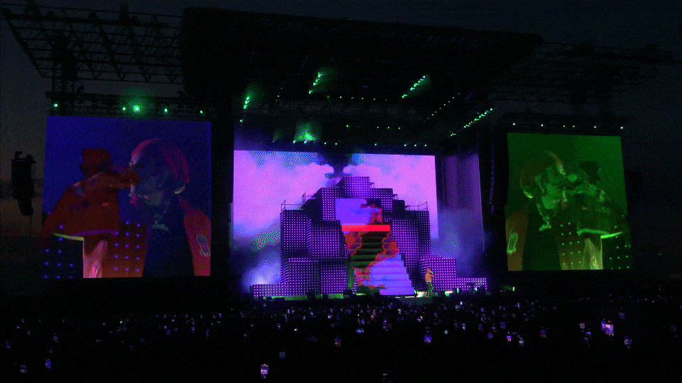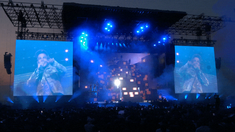 LEDs were the true stars of the show. A massive illuminated staircase and a 20-meter-wide LED wall brought every moment to life, shifting in shape and color with each track. The visuals — from gritty cityscapes