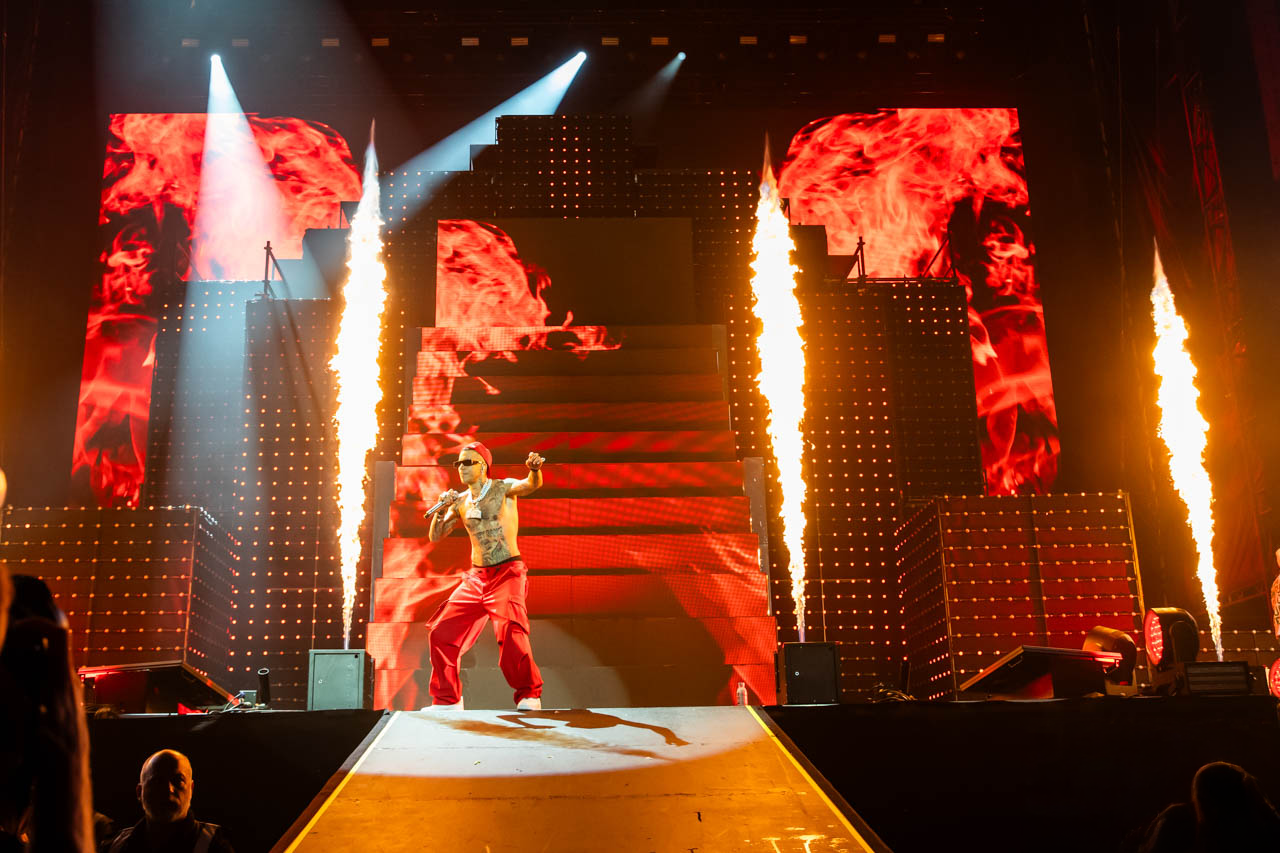 Sfera Ebbasta’s 2024 tour brought an impressive, finely crafted show to Italy’s biggest arenas and stadiums. The multi-level stage design transformed the space into a futuristic urban set. Each song had its own visual identity, turning the concert into a narrative journey that reflected the artist’s personal and musical evolution.