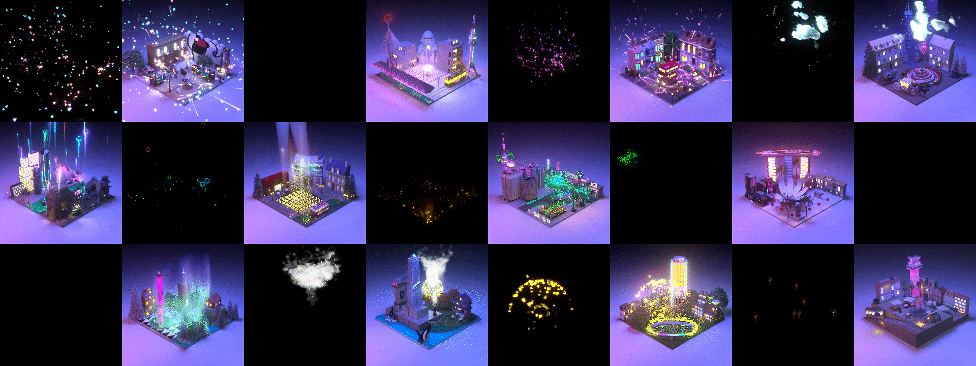 A total of 19 scenes were created, each with unique features and environments designed specifically for the event, all combined into a single montage of approximately 30 seconds for each scene.