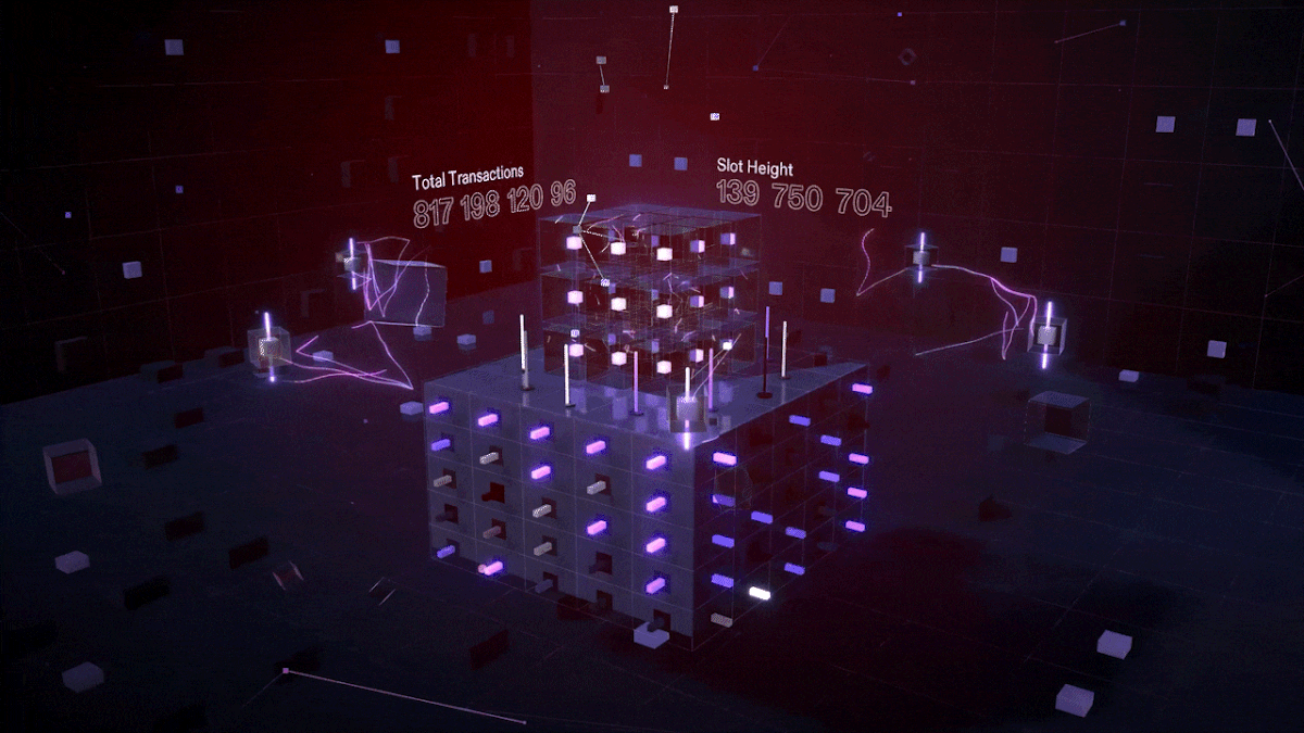 The idea behind the data visualizations of Solana's Hacker House 2022 world tour was to show the financial operations taking place in real time on the solonabeach.io website through scenes that reflect both the cryptocurrency brand and a specific feature of the place that hosted that particular event.