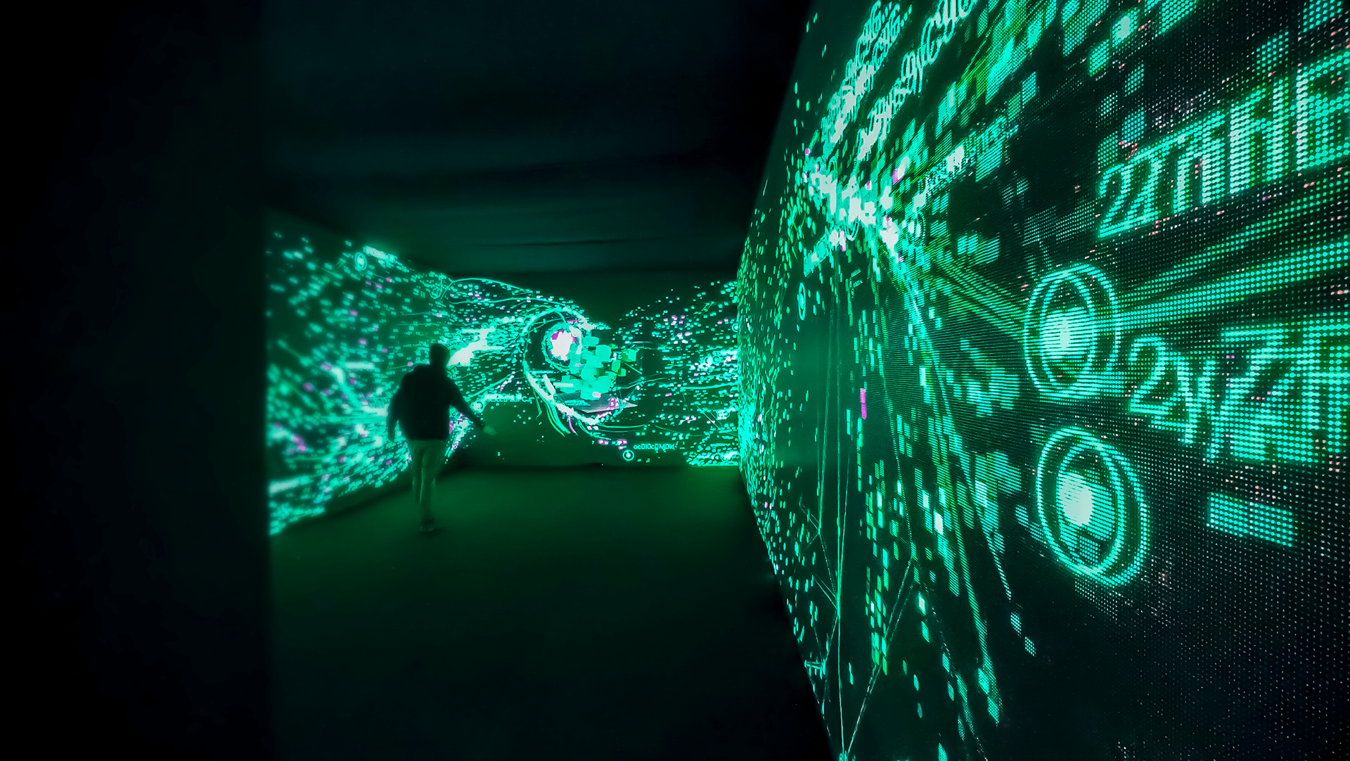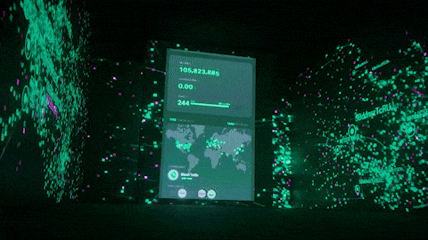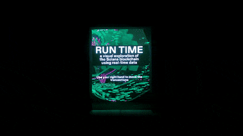 RUN TIME is an interactive installation that we made for Solana's Breakpoint event of 2021 in Lisbon. It represented the latest transactions of solanabeach.io and people could move them around and play with them, on the main wall, altering the blockchain.