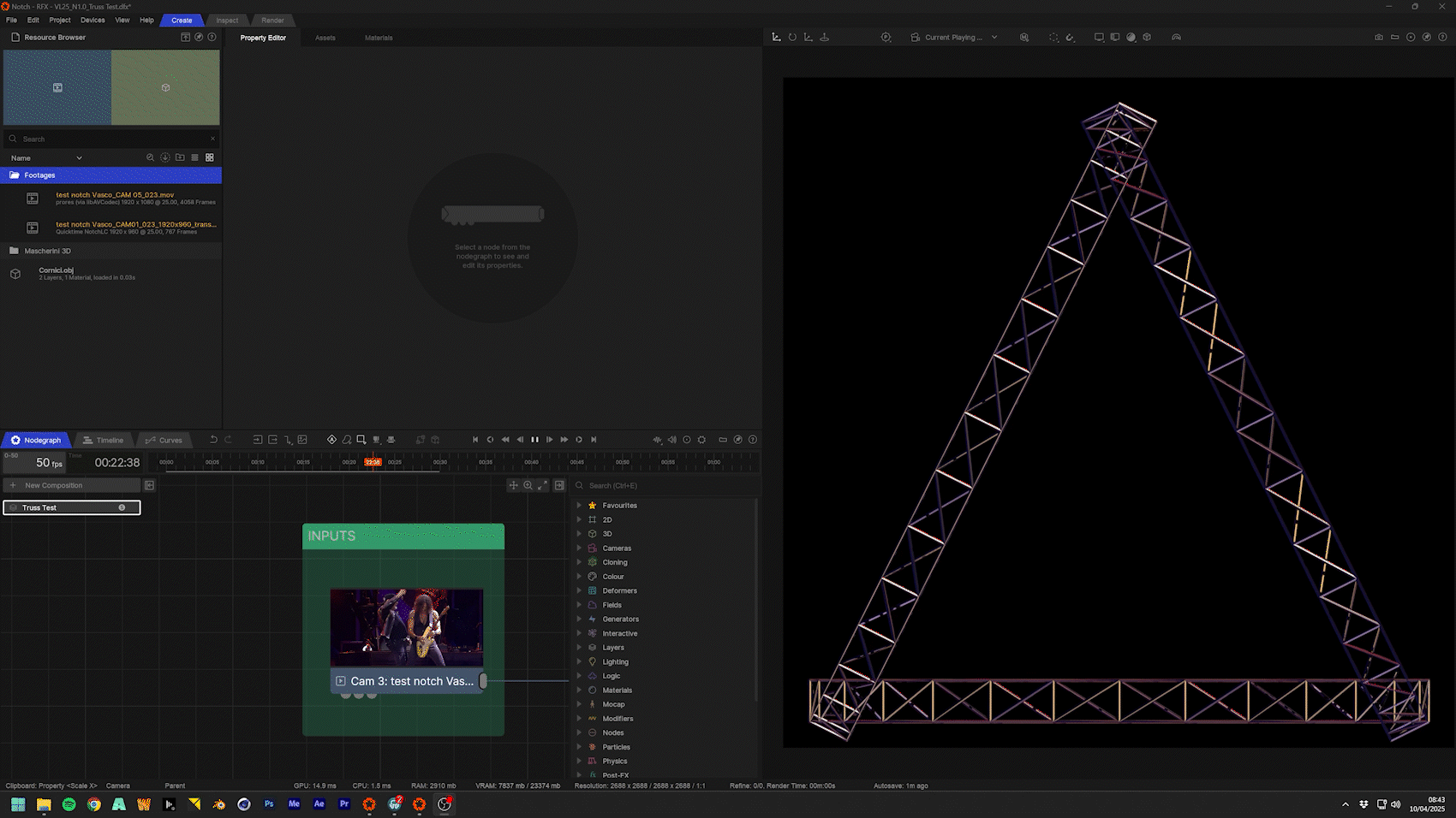 The concert’s video feed was processed as a dynamic input for the graphics: Notch analyzed the signal and generated immediate visual reactions, synchronized with the audio and the stage performance.